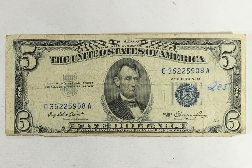1953 $5 SILVER CERTIFICATE BLUE SEAL