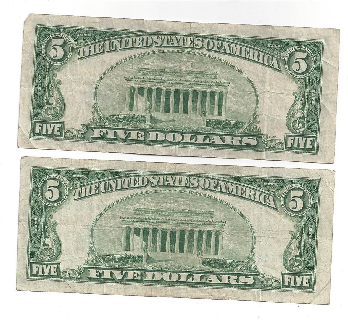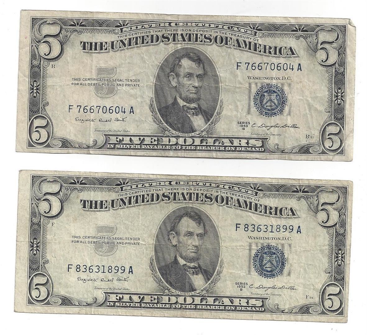 1953 $5 Silver Certificate Currency Lot of 2.