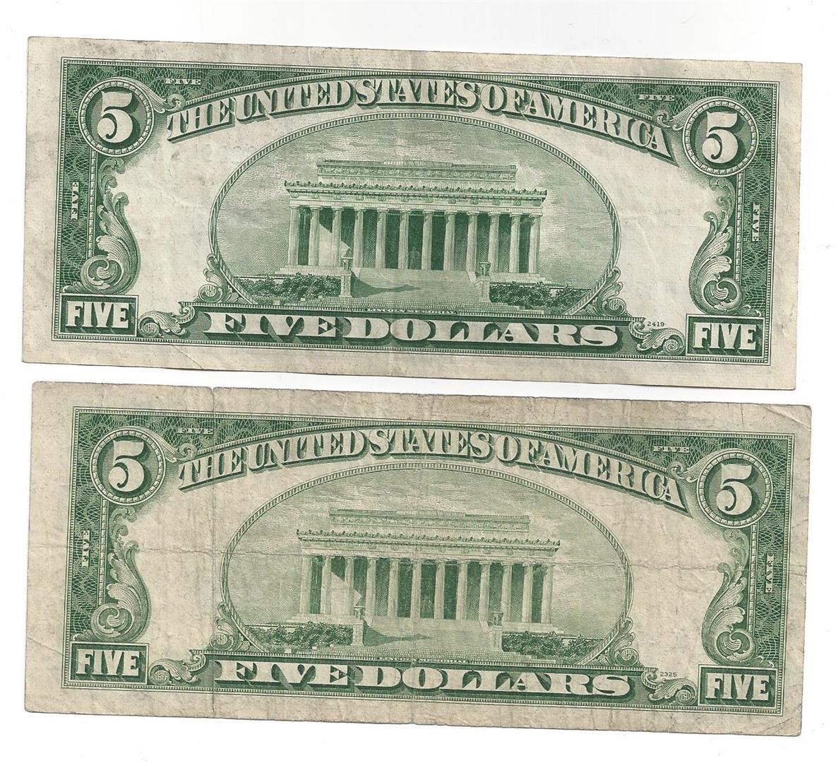 1953 $5 Silver Certificate Currency Lot of 2.