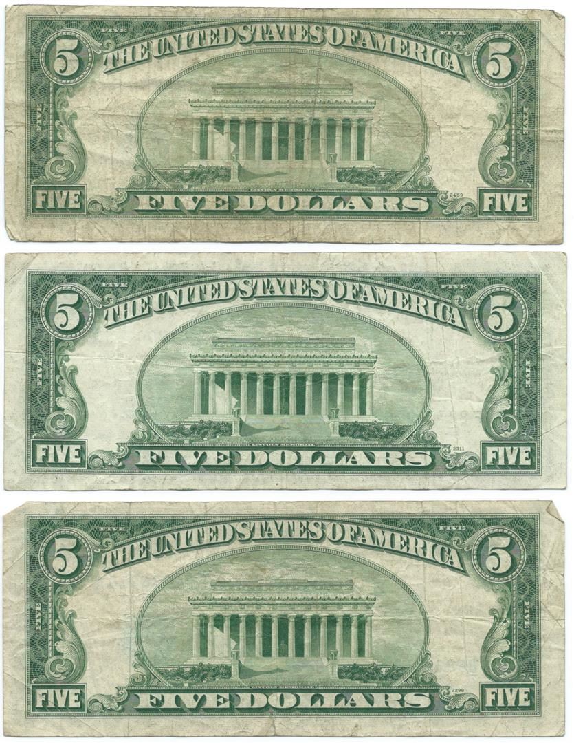 One 1953 $5 Silver Certificate Currency Lot of 3.