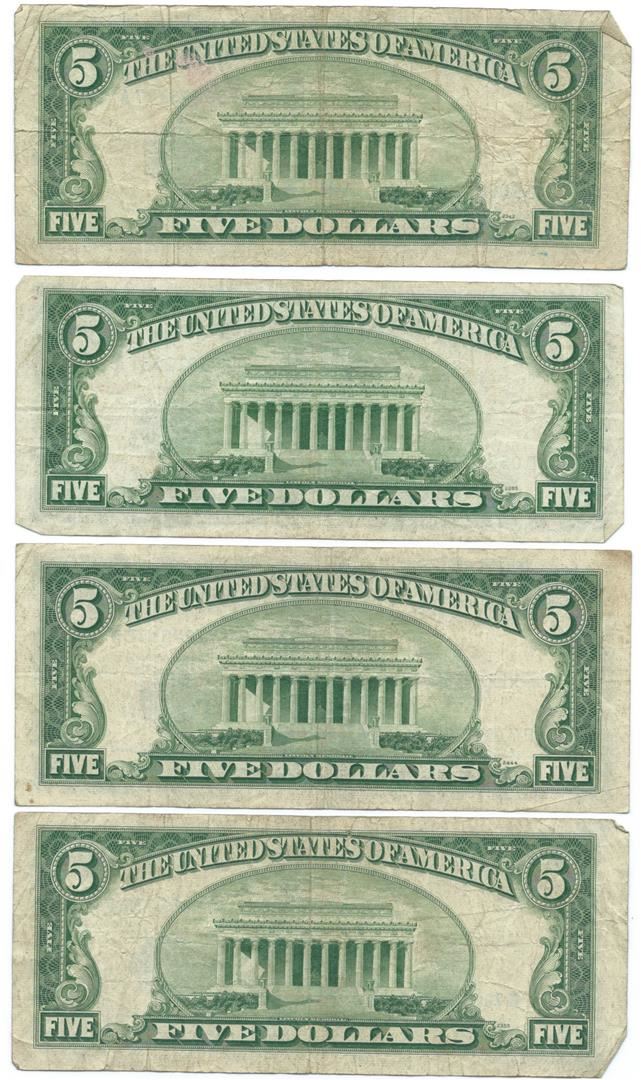 One 1953 $5 Silver Certificate Currency Lot of 4.