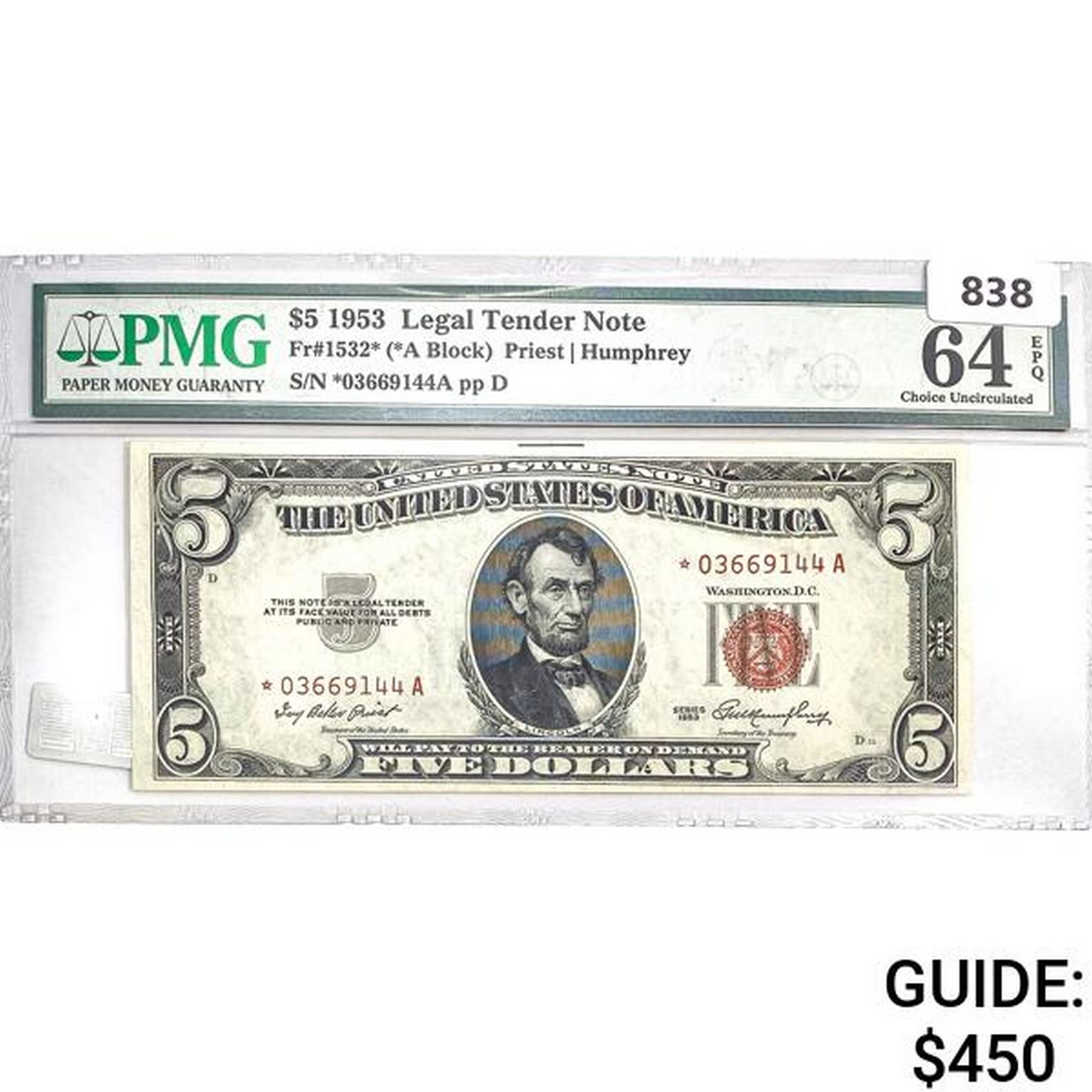1953 $5 Star Legal Tender Note PMG Ch UNC 64