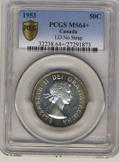 1953 50¢ LD NSF PCGS MS64+. Scarce variety, seldom seen better.
