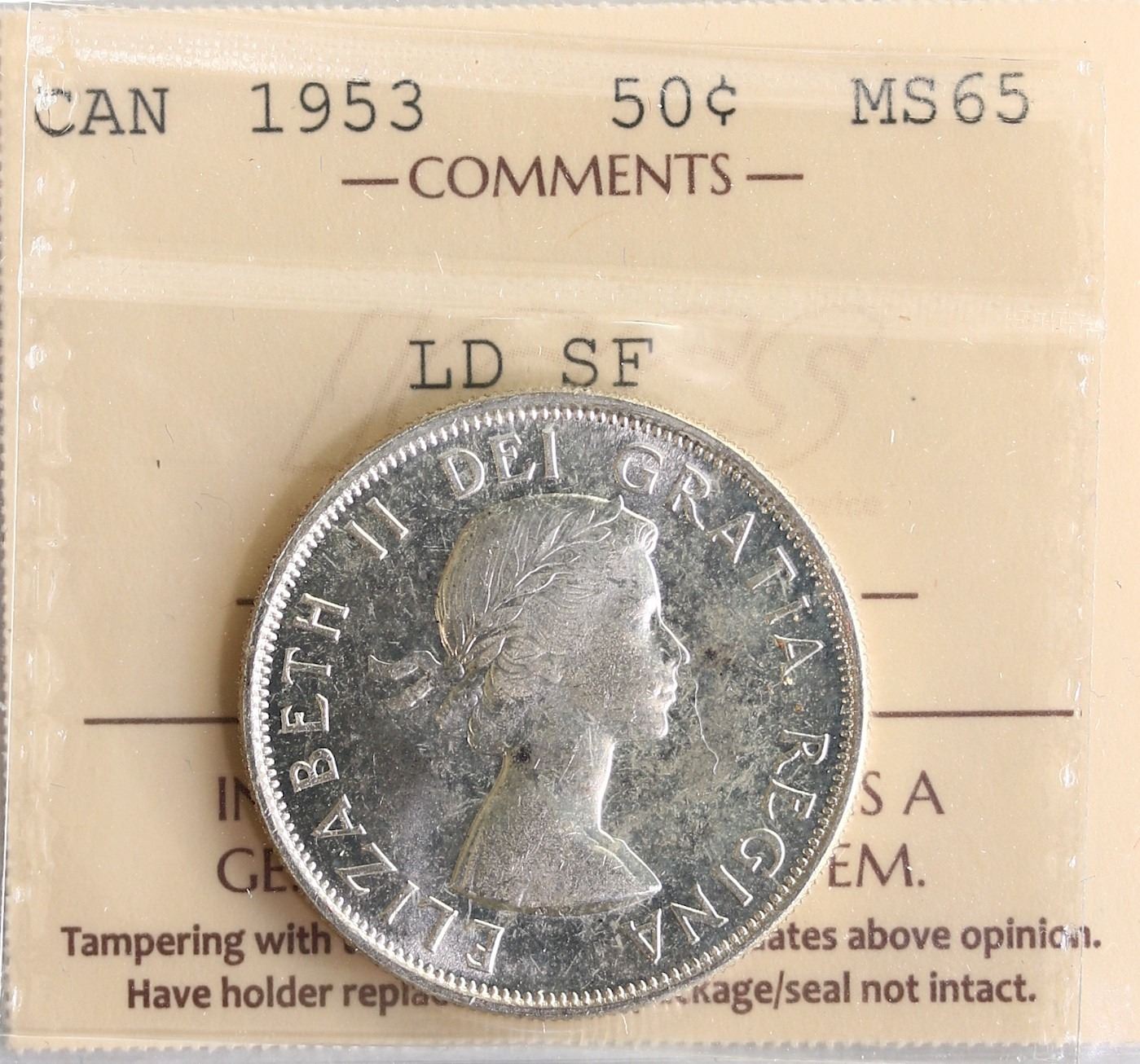1953 50¢ "LD SF" ICCS Gem Mint State-65, Blast white example.