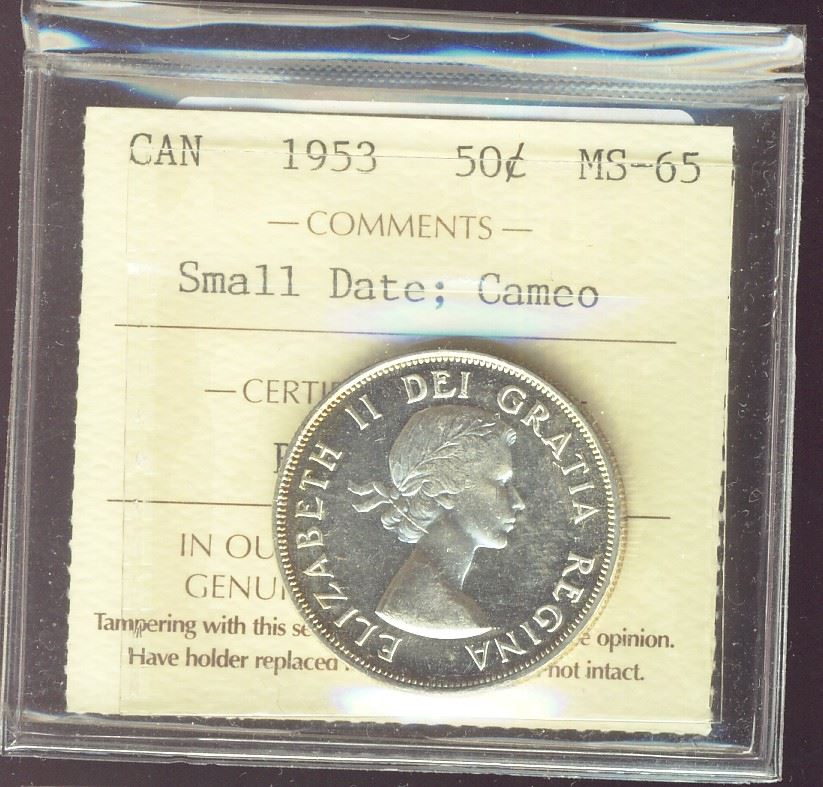 1953 50¢ SD ICCS MS65 Cameo. Crisp white issue.