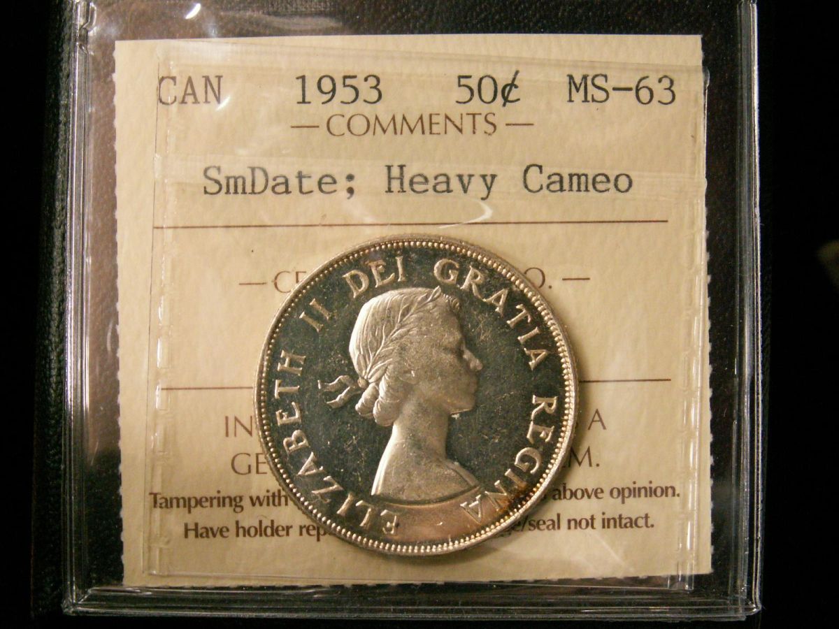 1953 50¢ SmDate ICCS MS63 Heavy Cameo.