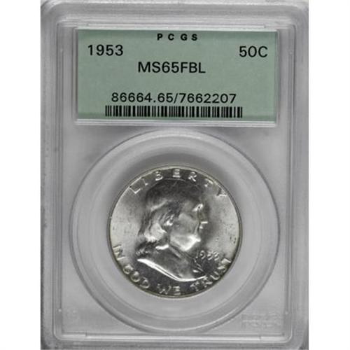 <B>1953 50C MS65 Full Bell Lines PCGS.</B></I> PCGS Population (266/29). NGC Census: (27/1). Numismedia Wsl. Price for NGC/PCGS coin in MS65: $480. (#86664)<BR><BR><b>Shipping:</b> Coins & Currency (<a target="_blank" href="http://www.heritageauctions.com/common/shipping.php">view shipping information</a>)