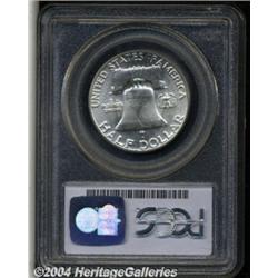 <table><tr><td><table><tr><td>1953 50C MS65 PCGS. Bright and lustrous with one mentionable, yet small mark on Franklin's hair. <BR><BR><B>Important notice:</B> Heritage usually auctions material at the rate of 200-250 lots per hour. On some occasions eBay Live bid software or the Internet may not be able to keep up with the pace of the auction. We recommend placing a realistic absentee bid now as insurance to avoid disappointment. Occasionally the auctioneer may eliminate or reject an eBay Live bid, and the auctioneer may also reopen a lot after the close of the eBay live bidding (usually because we missed an audience bid), and may reject your bid even if it shows you as the winning bidder. By bidding via eBay Live, you agree that Heritage may award the lot to another bidder at its sole discretion under the circumstances described above or any other reasonable circumstances. Since eBay bids are not shown to us until we open the lot on the floor, we treat those bids just like floor bids. In most cases the floor responds before the eBay bid is presented to us, due to Internet lag time, so for consistency we have made it a policy that floor bids are always considered first over tie eBay live bids. Also please note that all Heritage lots purchased through eBay Live carry a 20% Buyer's Premium. Please make sure you read the Terms and Conditions before you bid. <BR><BR><B>IMPORTANT ANNOUNCEMENT ABOUT RESERVES:</B> Heritage now divulges all reserves on its web site 7 days before every auction. If you want to know whether the reserve on this lot has been met, and if not, what the reserve amount is, please visit this lot page on the HeritageCoin.com web site, or email: bid@HeritageGalleries.com </span></font></td></tr></table></td></tr></table>