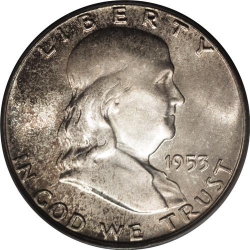<B>1953<50C> MS66 Full Bell Lines PCGS.</B></I> The 1953-P has always been a collector favorite because of the low mintage of fewer than 2.8 million pieces, the lowest mintage in the series. It is also among the worst struck issues in the series, being comparable to the 1961-1963 issues among P-mint dates. Rick Tomaska closely parallels the 1953-P with the 1952-S in rarity and value for MS65-66 FBL specimens. Only 28 pieces have been so graded by PCGS with none finer (3/06). This piece has strong definition on the bell lines and thick mint luster. The obverse shows light, speckled toning on the left side of the obverse with hazy, lilac-rose coloration elsewhere.<BR><I>From The Alex & Nan Registry Sets.</B></I> <BR><BR><B>Important notice:</B> Heritage usually auctions material at the rate of 200-250 lots per hour. On some occasions eBay Live bid software or the Internet may not be able to keep up with the pace of the auction. We recommend placing a realistic absentee bid now as insurance to avoid disappointment. Occasionally the auctioneer may eliminate or reject an eBay Live bid, and the auctioneer may also reopen a lot after the close of the eBay live bidding (usually because we missed an audience bid), and may reject your bid even if it shows you as the winning bidder. By bidding via eBay Live, you agree that Heritage may award the lot to another bidder at its sole discretion under the circumstances described above or any other reasonable circumstances. Since eBay bids are not shown to us until we open the lot on the floor, we treat those bids just like floor bids. In most cases the floor responds before the eBay bid is presented to us, due to Internet lag time, so for consistency we have made it a policy that floor bids are always considered first over tie eBay live bids. Also please note that all Heritage lots purchased through eBay Live carry a 20% Buyer's Premium. Please make sure you read the Terms and Conditions before you bid. This lot is being auctioned in conjunction with a live floor auction by Heritage Galleries & Auctioneers. All final auction and invoice information will be supplied by Heritage Galleries & Auctioneers, and all other information should be considered preliminary. Lot:3098 <BR><BR><B>Winning Notification and Billing:</B> After the FINAL session in this auction is complete, Heritage will send e-mail and snail mail invoices. This process normally takes several days. All final auction and invoice information will be supplied by Heritage Galleries & Auctioneers, and all other information should be considered preliminary. <BR><BR>This auction will be conducted on a live auction floor and over the Internet through eBay Live. If you choose to place an absentee bid, please take a moment to <font color='#0000ff'><u><a href='http://pages.ebay.com/liveauctions/help/before/laabsentee.html'>learn how eBay Live absentee bidding works</a></u></font><font color='#000000'>