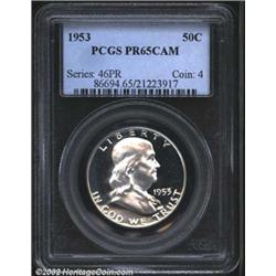 1953 50C PR65 Cameo PCGS. Brilliant throughout and well balanced with noticeable portions of mint fr