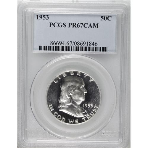 <B>1953 50C PR67 Cameo PCGS.</B></I> A gleaming Superb Gem, essentially untoned with strong contrast. A boldly impressed and worthwhile Cameo example of this often-elusive issue. Population: 76 in 67 Cameo, 3 finer (11/06).<BR><BR><b>Shipping:</b> Coin/Currency (<a target="_blank" href="http://www.heritageauctions.com/common/shipping.php">view shipping information</a>)