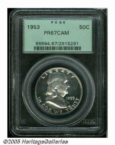 1953 50C PR67 Cameo PCGS. Fully struck with dark,