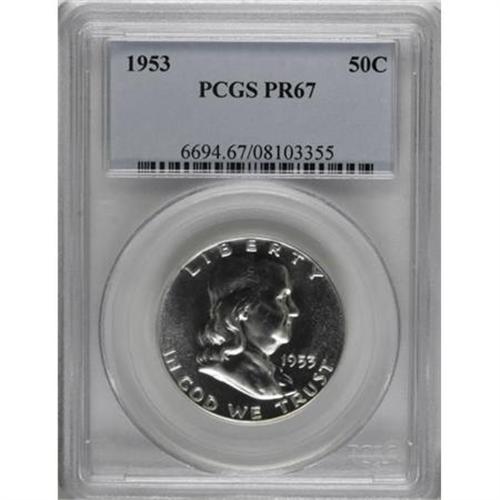 <B>1953 50C PR67 PCGS.</B></I> PCGS Population (191/11). NGC Census: (369/37). Mintage: 128,800. Numismedia Wsl. Price for NGC/PCGS coin in PR67: $275. (#6694)<BR><BR><B>Coin Engraver:</B> John R. Sinnock<BR><BR><b>Shipping:</b> Coins & Currency (<a target="_blank" href="http://www.heritageauctions.com/common/shipping.php">view shipping information</a>)