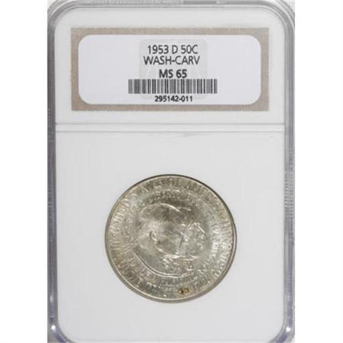 <B>1953 50C Washington-Carver PDS Set MS65 NGC.</B></I><BR><BR><b>Shipping:</b> Coins & Currency (<a target="_blank" href="http://www.heritageauctions.com/common/shipping.php">view shipping information</a>)