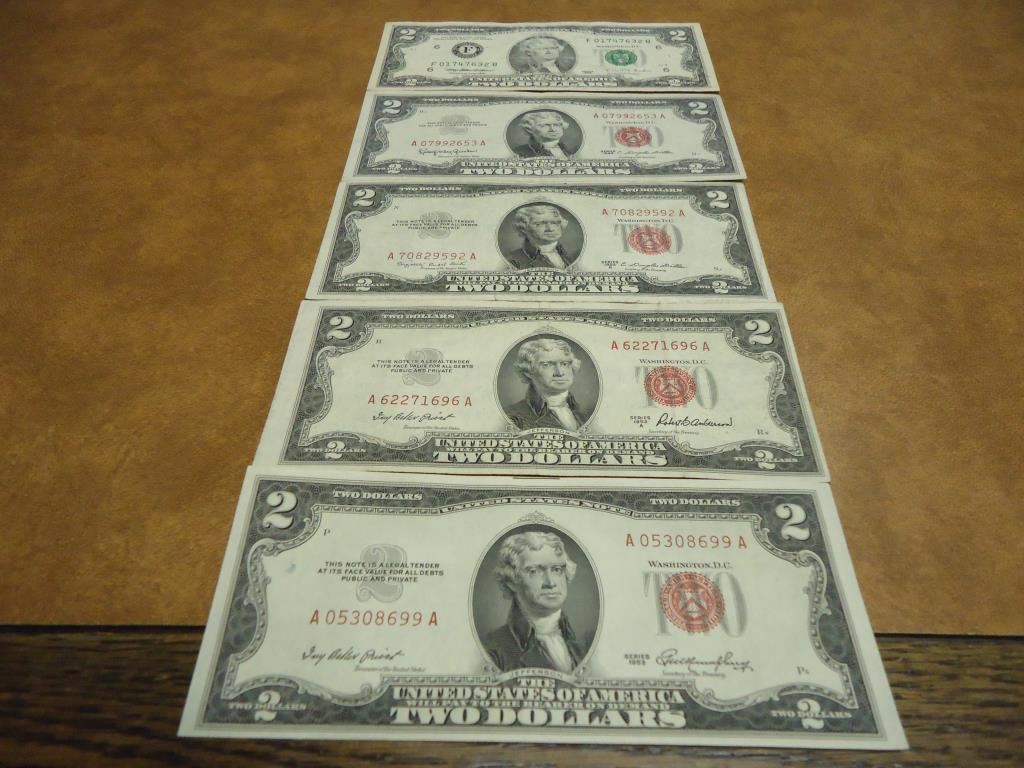 1953,53-A,53-B,63 & 95 $2 US NOTES 4 RED SEALS AND