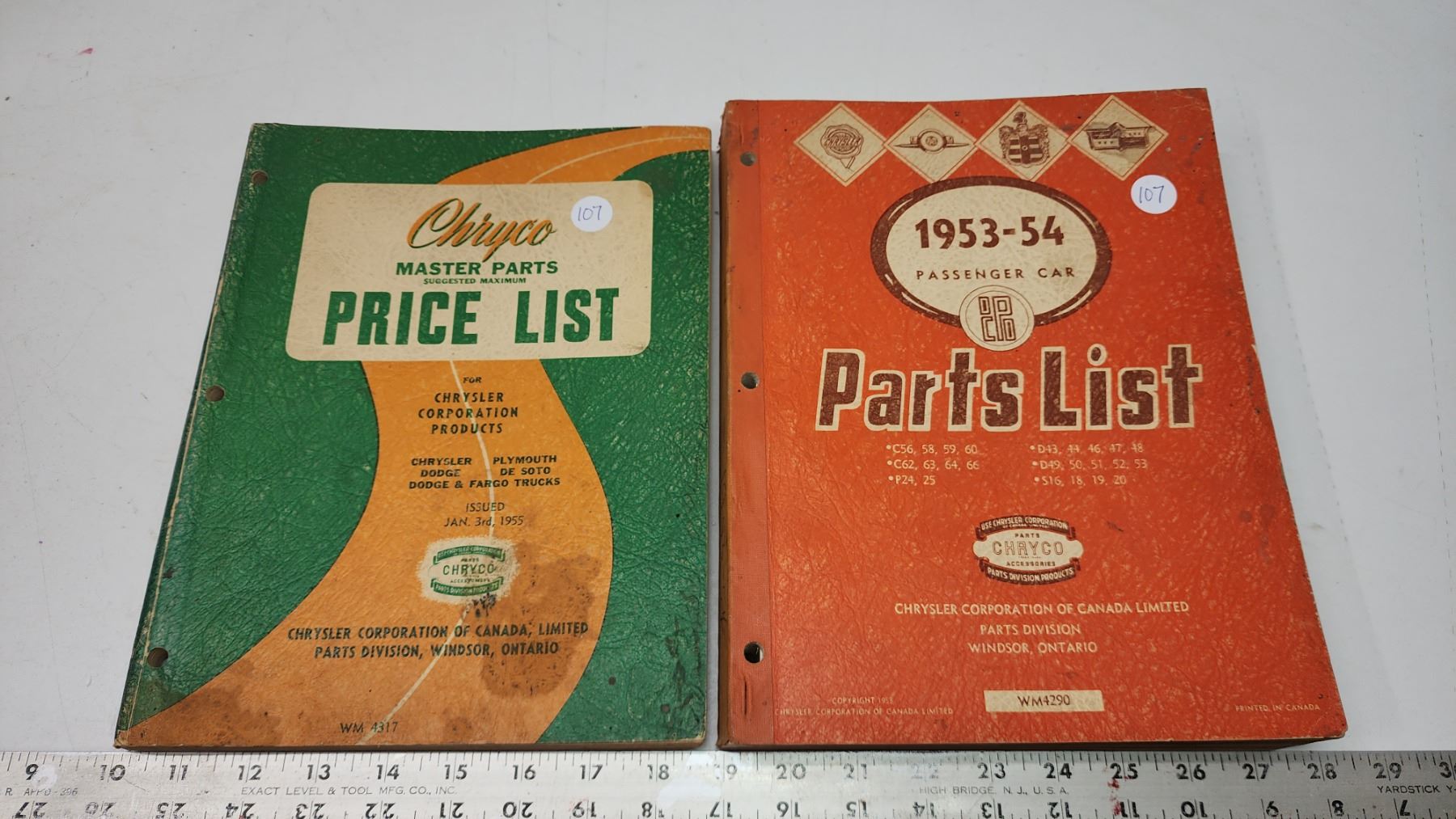 1953-54 Chrysler car parts list & 1955 Master parts price list