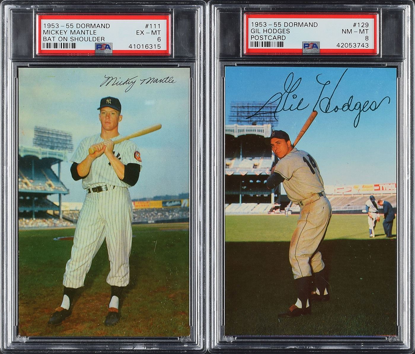 Includes: Ford (EX/MT), Rizzuto (VG/EX), Berra (EX), Collins - No Patch (EX), Mantle - bat on shoulder (PSA EX/MT 6), Mantle - batting (VG/EX, crease), Martin (EX), Mize (blank back), Stengel (EX), Slaughter (NM), Campanella (EX), Hodges (PSA NM-MT 8) and Reese (NM).