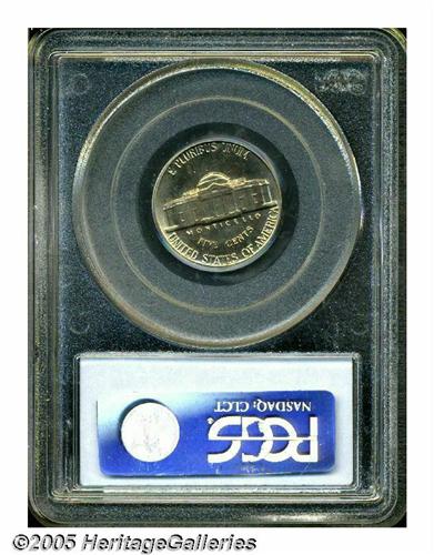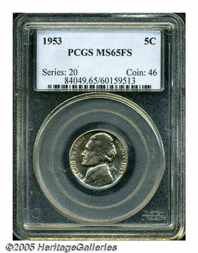 <B>1953<5C> MS65 Full Steps PCGS.</B></I> Sharply struck with bright luster, rich olive-gold toning, and just a few wispy marks, on Jefferson's jaw and cheekbone, which are difficult to discern without magnification. Population: 6 in 65 Full Steps, 0 finer (4/05).