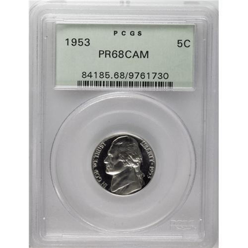 1953 5C PR68 Cameo PCGS. Sharply struck and practicall