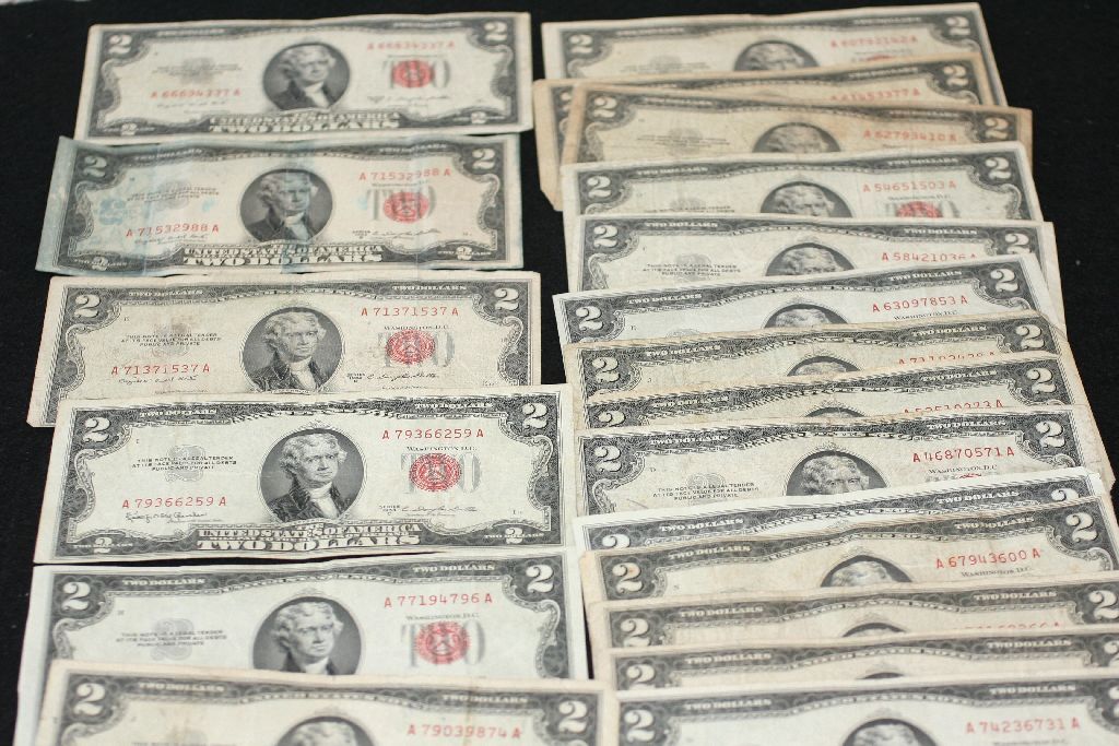 1953-A, 1953-B, 1953-C & 1963-A United States "Well Experienced" Note $2; Red Seal; Lot of 20