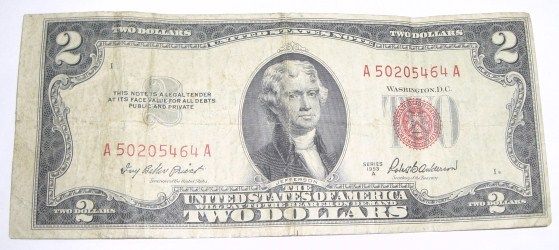1953 A SERIES $2 RED SEAL BILL SERIAL # A50205464A *NICE BILL - LOOK TO DETERMINE GRADE*!! ***Coin, Currency & All Items Listed in this auction - Grades, Conditions and Values are not Safe Deposit Coins LLC Responsibilty. Grades, Condition and Values are determined by Consigner(s) & Buyers ONLY