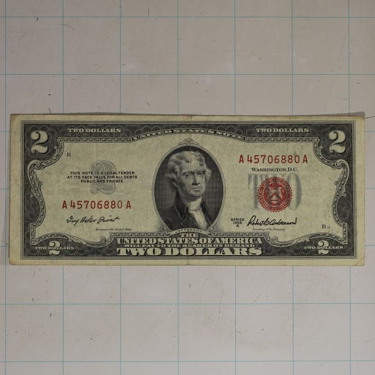 1953-A US $2 RED SEAL NOTE, A45706880A