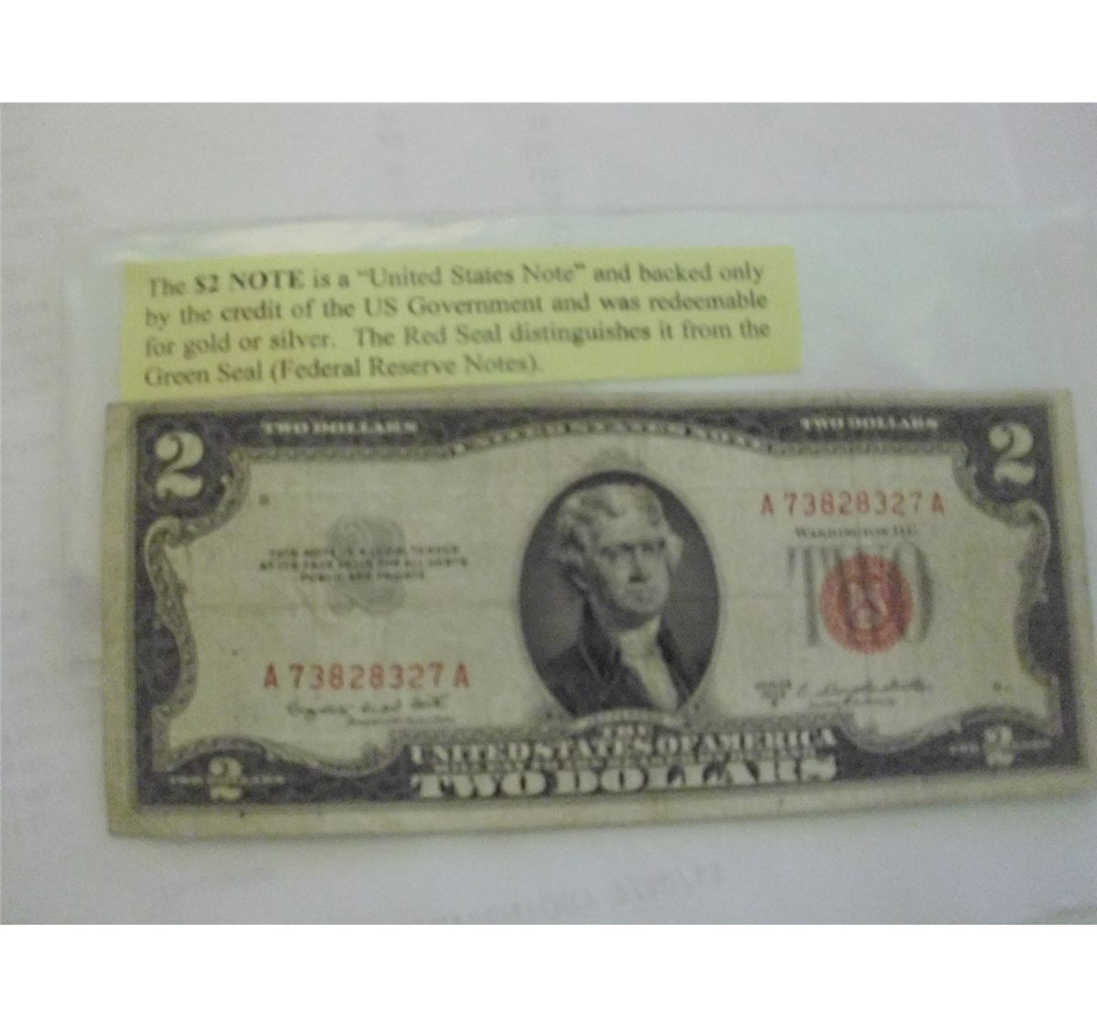 1953 B $2 "UNITED STATES NOTE" RED SEAL. REDEEMABLE FOR SILVER OR GOLD