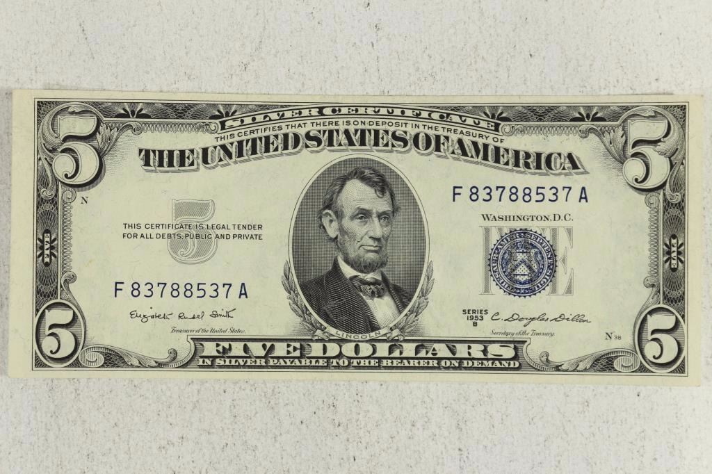 1953-B $5 SILVER CERTIFICATE CRISP BLUE SEAL