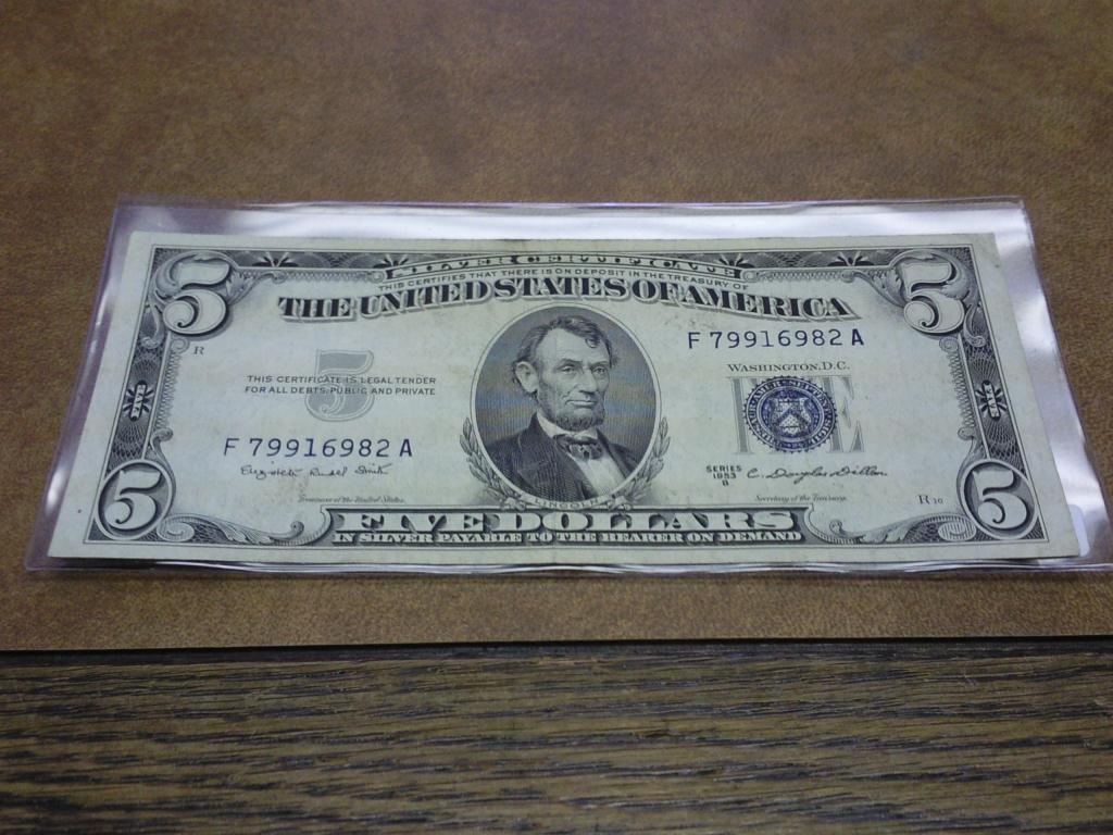 1953-B FIVE DOLLAR SILVER CERT. (BLUE SEAL)