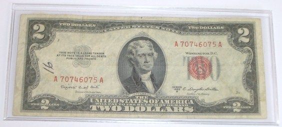 1953 B U.S. $2 bill *Red Stamp* ***Coin, Currency & All Items Listed in this auction - Grades, Conditions and Values are not Safe Deposit Coins LLC Responsibilty. Grades, Condition and Values are determined by Consigner(s) & Buyers ONLY***
