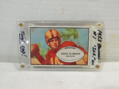 1953 BOWMAN #1 FOOTBALL ROOKIE CARD EDDIE LE BARON. VERTICLE CREASE. AS SHOWN. VIEW PICTURE FOR DETAIL.