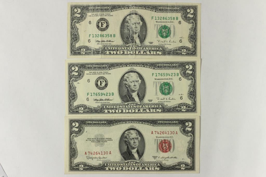 1953-C $2 US RED SEAL NOTE AND 2-1995 $2 FRN'S