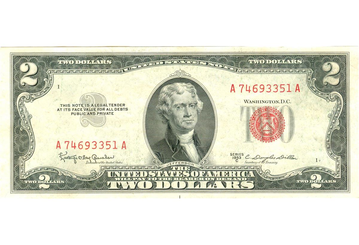 1953-C $2 XF/AV Red Seal Note.
