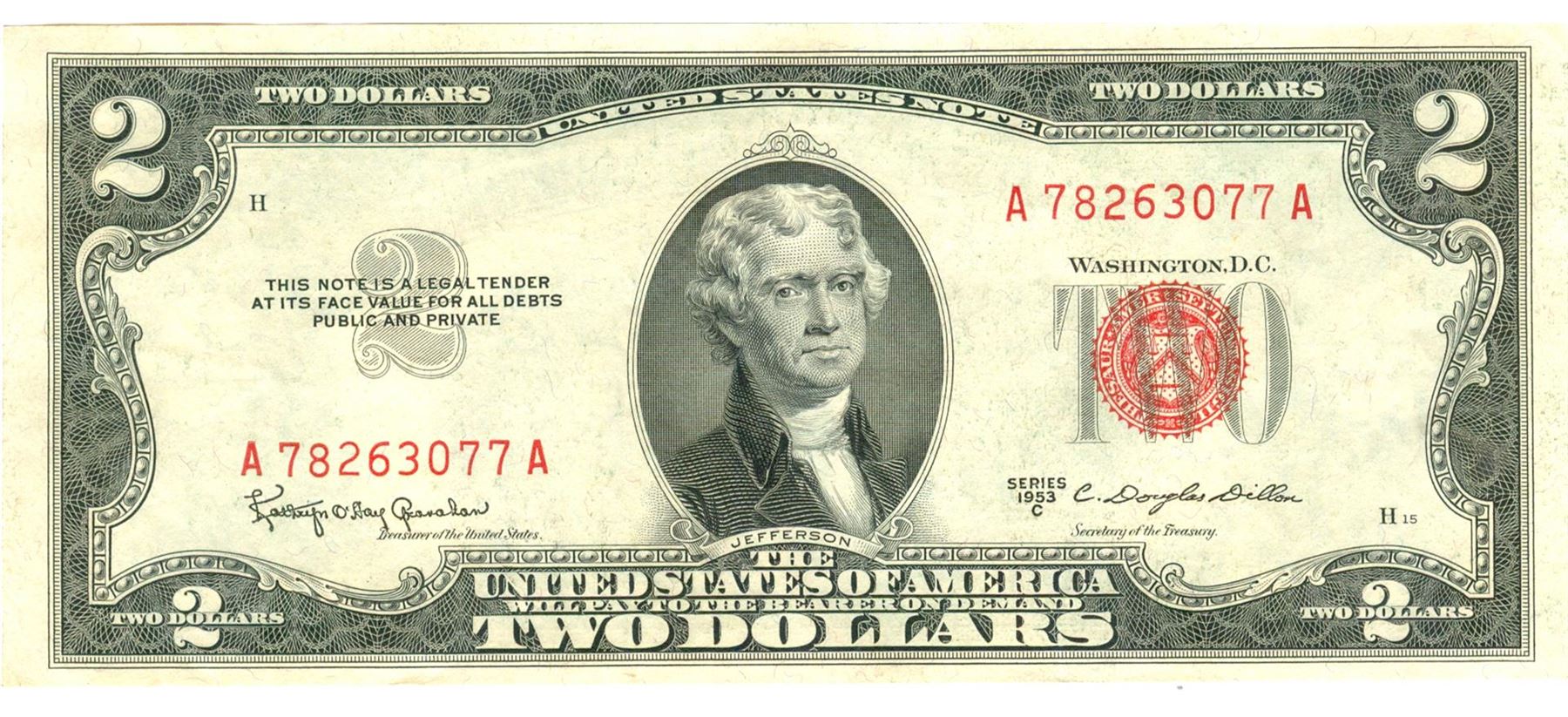 1953-C $2 XF/AV Red Seal Note.