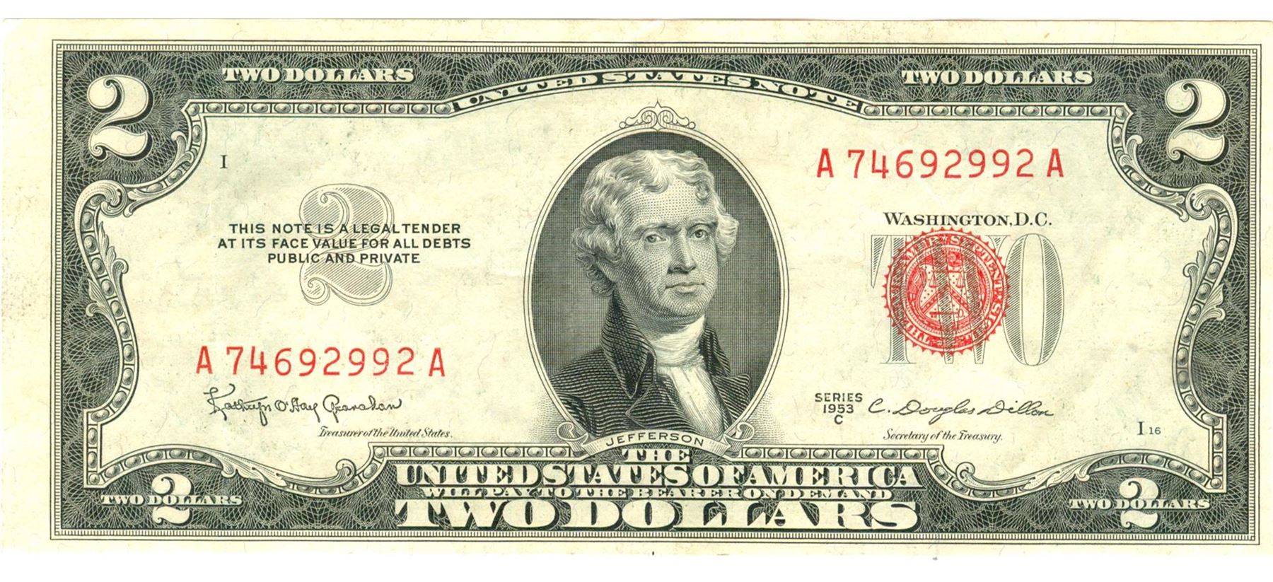 1953-C $2 XF/AV Red Seal Note.