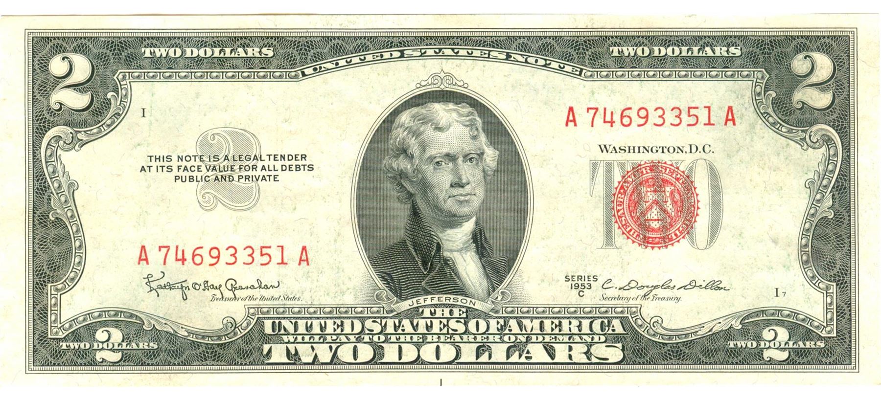 1953-C $2 XF/AV Red Seal Note.