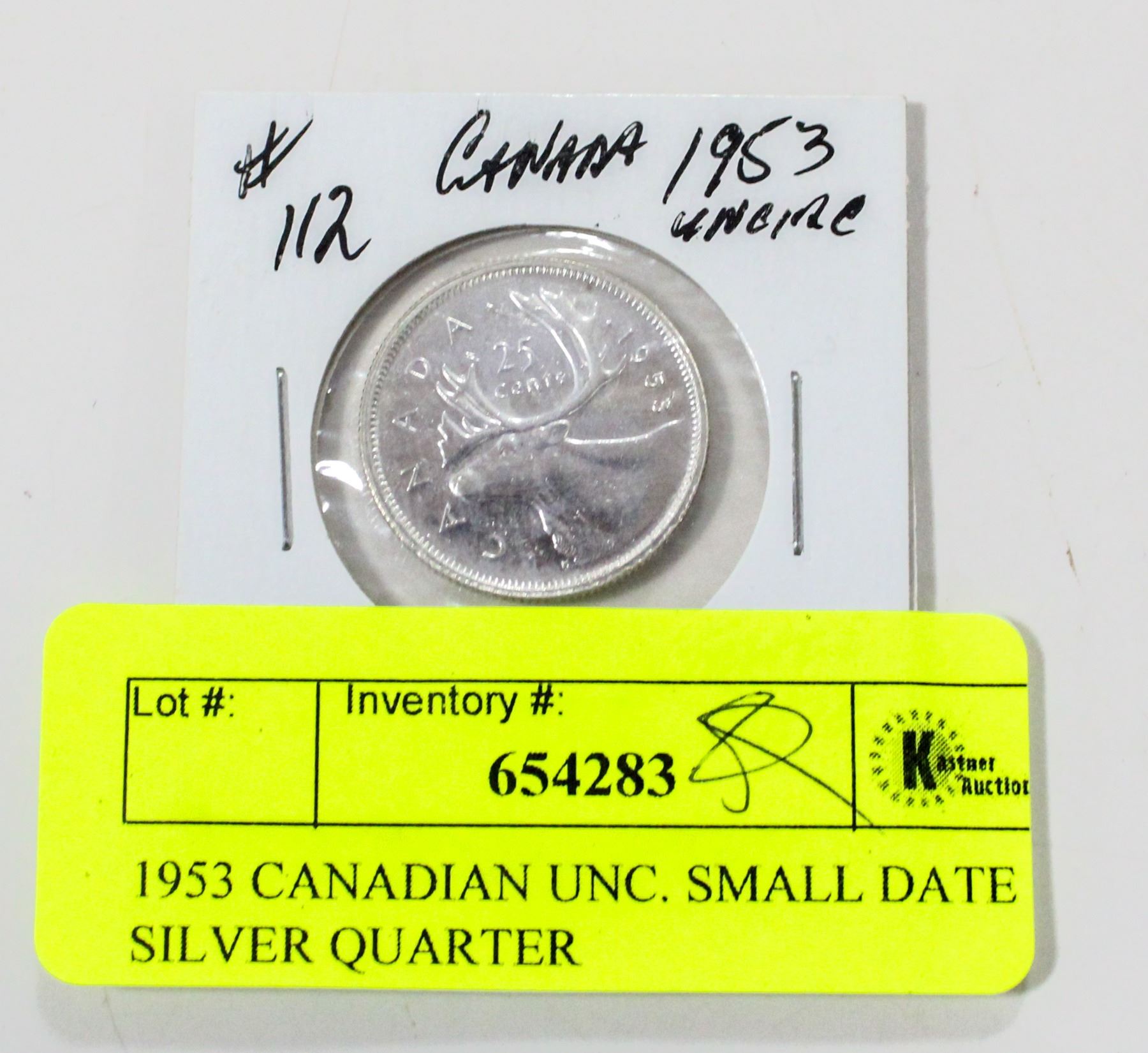 1953 CANADIAN UNC. SMALL DATE SILVER QUARTER