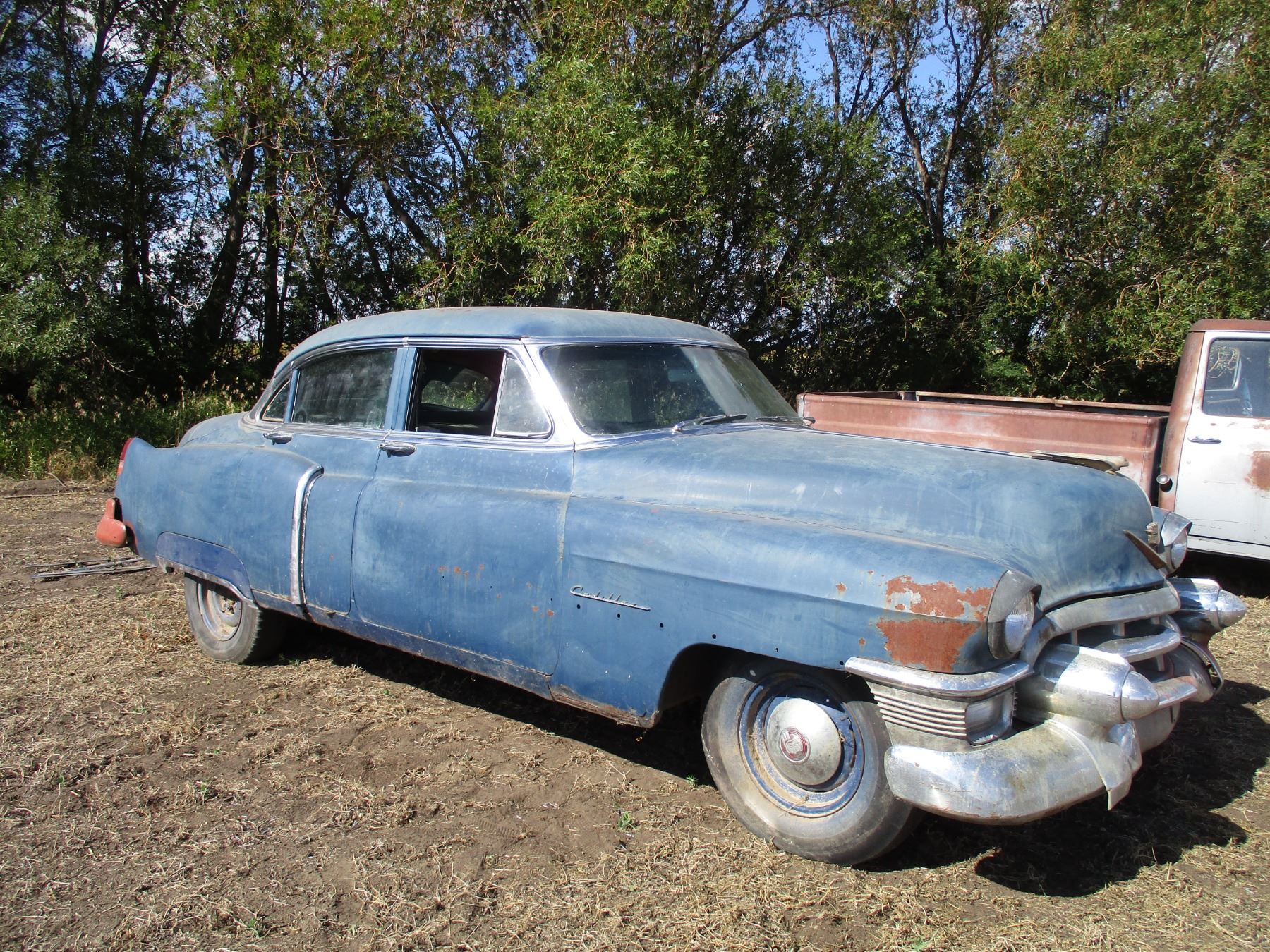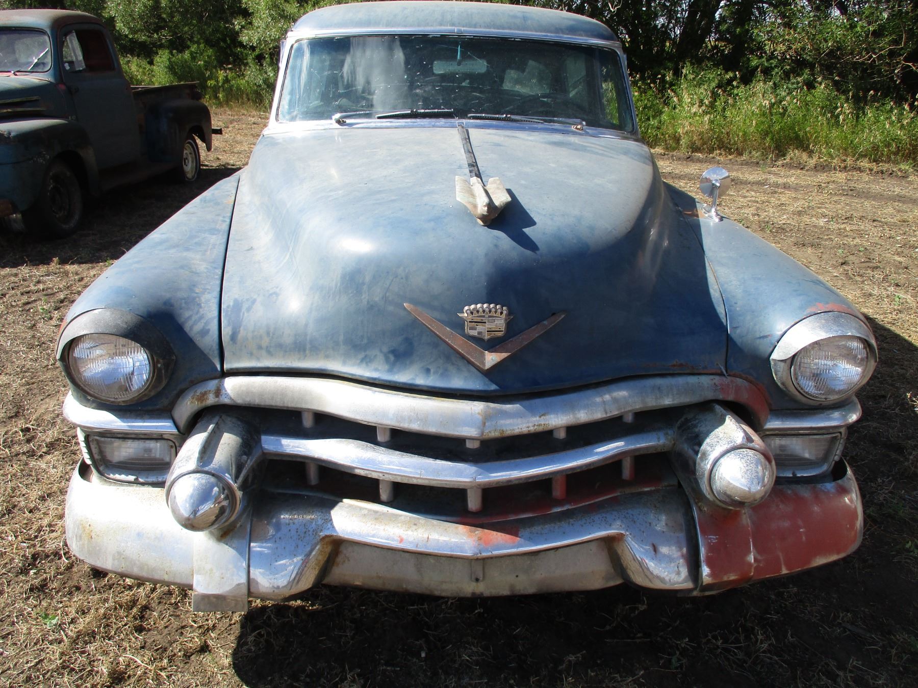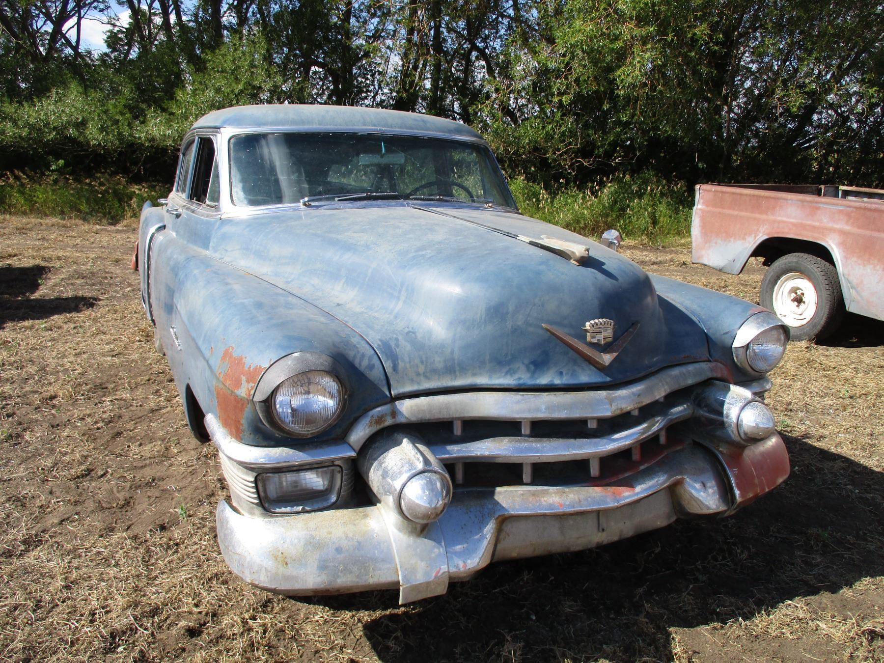1953 Cadillac Sedan - 4 door - 331 cu in V8 original to the car (non-running) - original automatic trans, factory power windows, original 15" rums, all chrome + emblems present (in trunk of car)