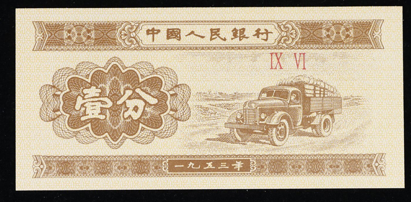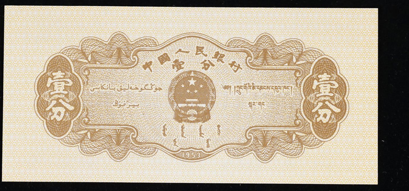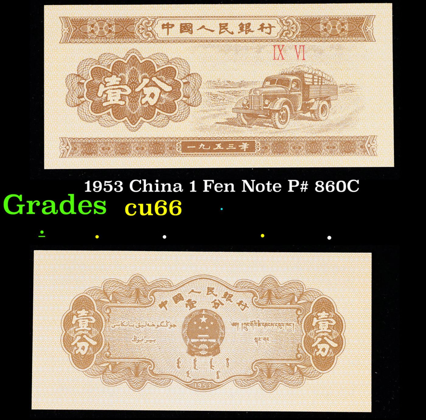 1953 China 1 Fen Note P# 860C Grades Gem+ CU.