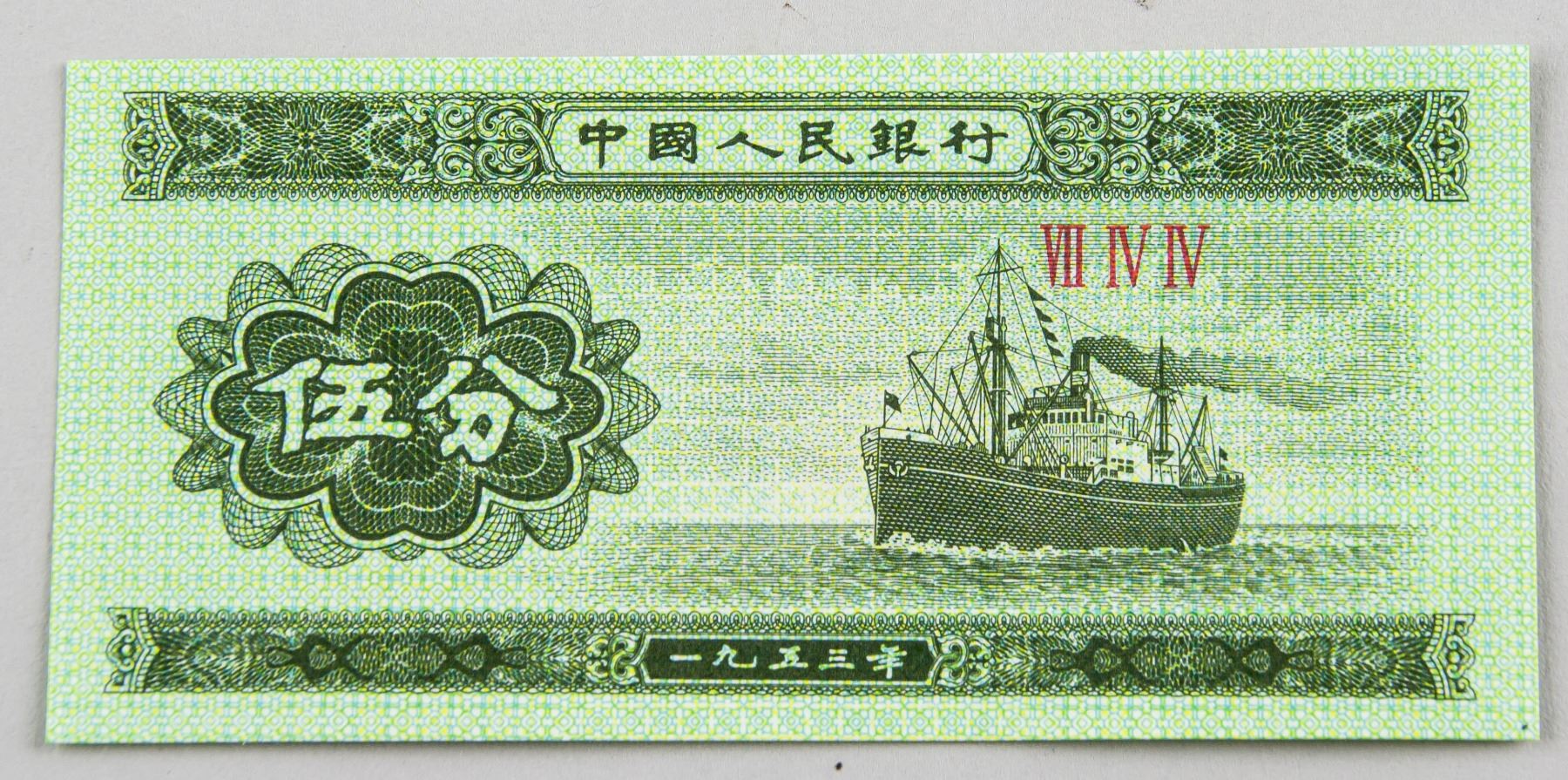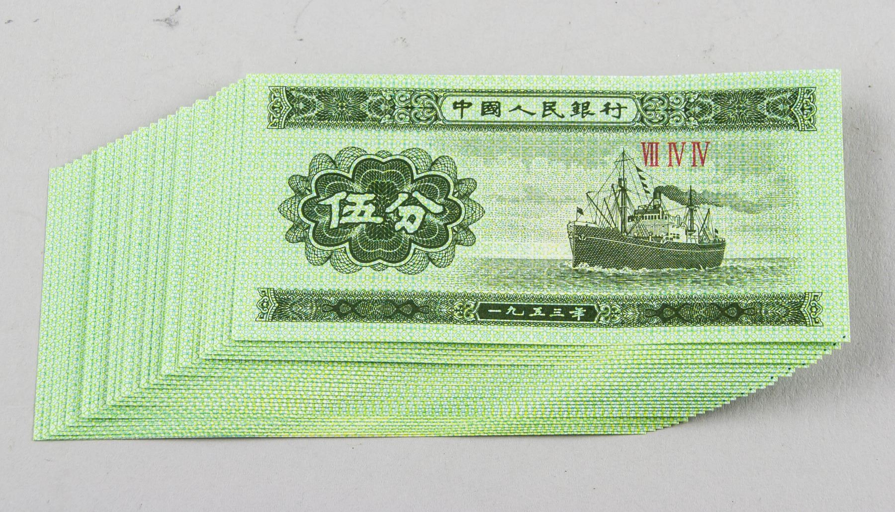 25 pieces 1953 Chinese 5 cents banknotes, serial number VII IV IV, uncirculated
