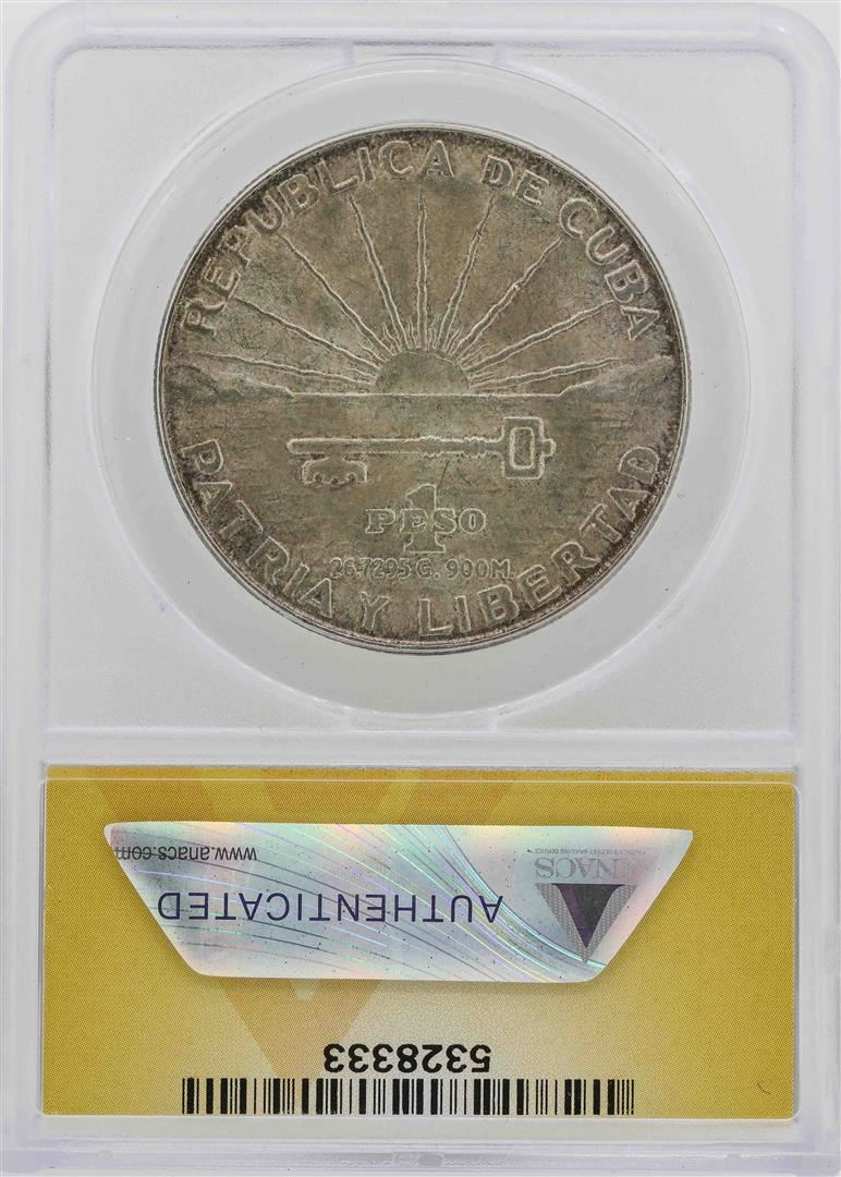 One 1953 Cuba Centennial of Marti Peso Coin ANACS MS60. ANACS Certified.