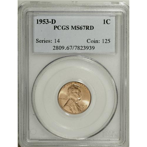 <B>1953-D 1C MS67 Red PCGS.</B></I> Rich orange luster dominates the reverse, and the straw-gold obverse also exhibits dazzling cartwheel sheen. This well struck example is unabraded, and separated from perfection only by a few pinpoint flecks. Population: 12 in 67 Red, 0 finer (11/06).<BR><BR><b>Shipping:</b> Coin/Currency (<a target="_blank" href="http://www.heritageauctions.com/common/shipping.php">view shipping information</a>)