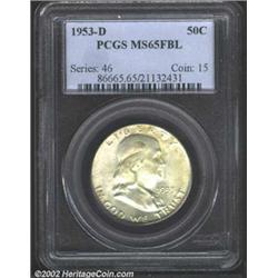 1953-D 50C MS65 Full Bell Lines PCGS. Lightly toned with milky-gray and yellow-green colors. A lustrous and well struck Gem that has essentially pristine fields. Important notice: We expect to be auctioning lots at the rate of 200-250 per hour. Sometimes eBay Premier live bid software cannot keep up with that pace, so we strongly recommend that you place a realistic proxy bid now as insurance to avoid disappointment. Also please note that all Heritage/CAA lots purchased through eBay Premier carry a 20% Buyer's Premium. Please make sure you read the Terms and Conditions.