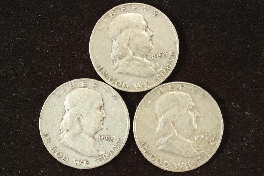 1953-D,53-D & 1954-D FRANKLIN HALF DOLLARS