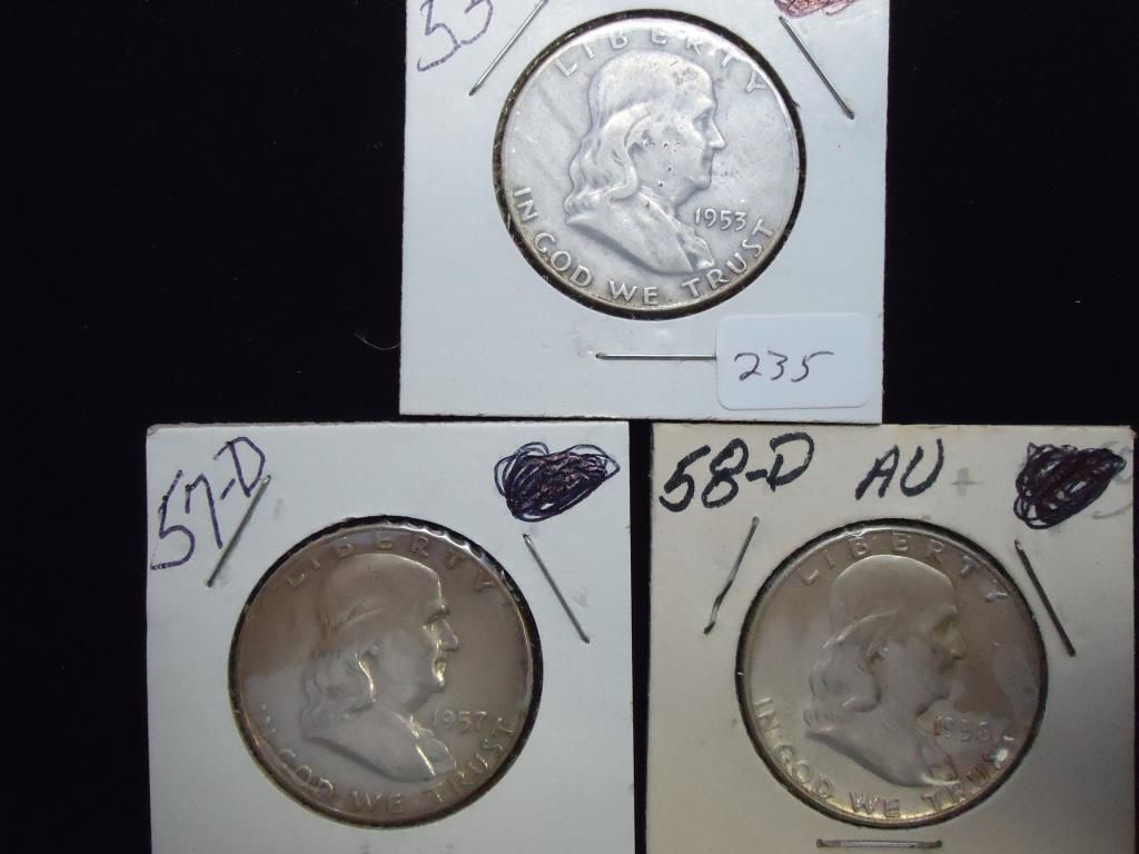 1953-D,57-D & 58-D FRANKLIN HALF DOLLAR