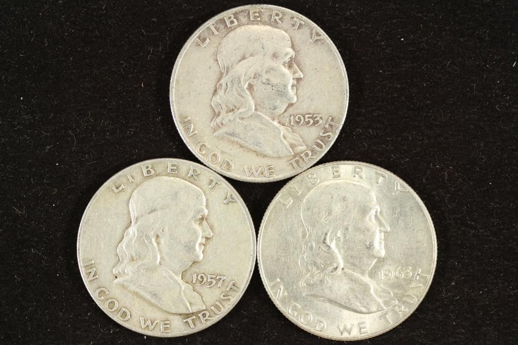 1953-D,57-D & 63-D FRANKLIN HALF DOLLARS