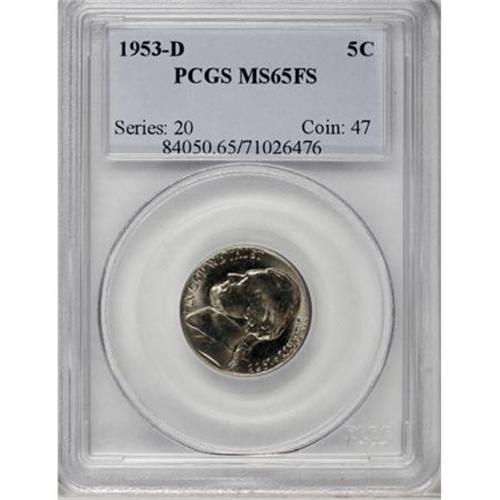 <B>1953-D 5C MS65 Full Steps PCGS.</B></I> PCGS Population (68/12). NGC Census: (3/0). (#84050)<BR><BR><b>Shipping:</b> Coins & Currency (<a target="_blank" href="http://www.heritageauctions.com/common/shipping.php">view shipping information</a>)