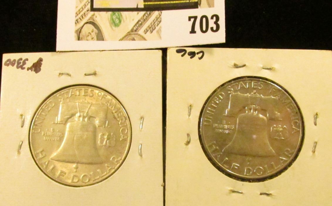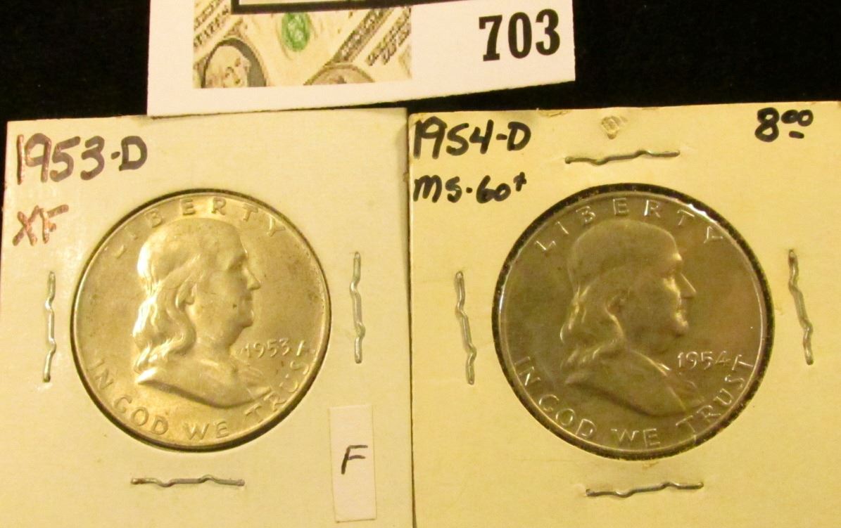 1953 D EF & 54 D Uncirculated Benjamin Franklin Half Dollars.