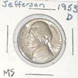 1953-D JEFFERSON NICKEL *RARE MS HIGH GRADE-NICE EARLY COIN!! NICKEL CAME OUT OF SAFE!! ***Coin, Currency & All Items Listed in this auction - Grades, Conditions and Values are not Safe Deposit Coins LLC Responsibilty. Grades, Condition and Values are determined by Consigner(s) & Buyers ONLY