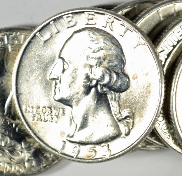 1953-D WASHINGTON QUARTER ROLL, ( 40 ) COINS GEM 64 AND 65